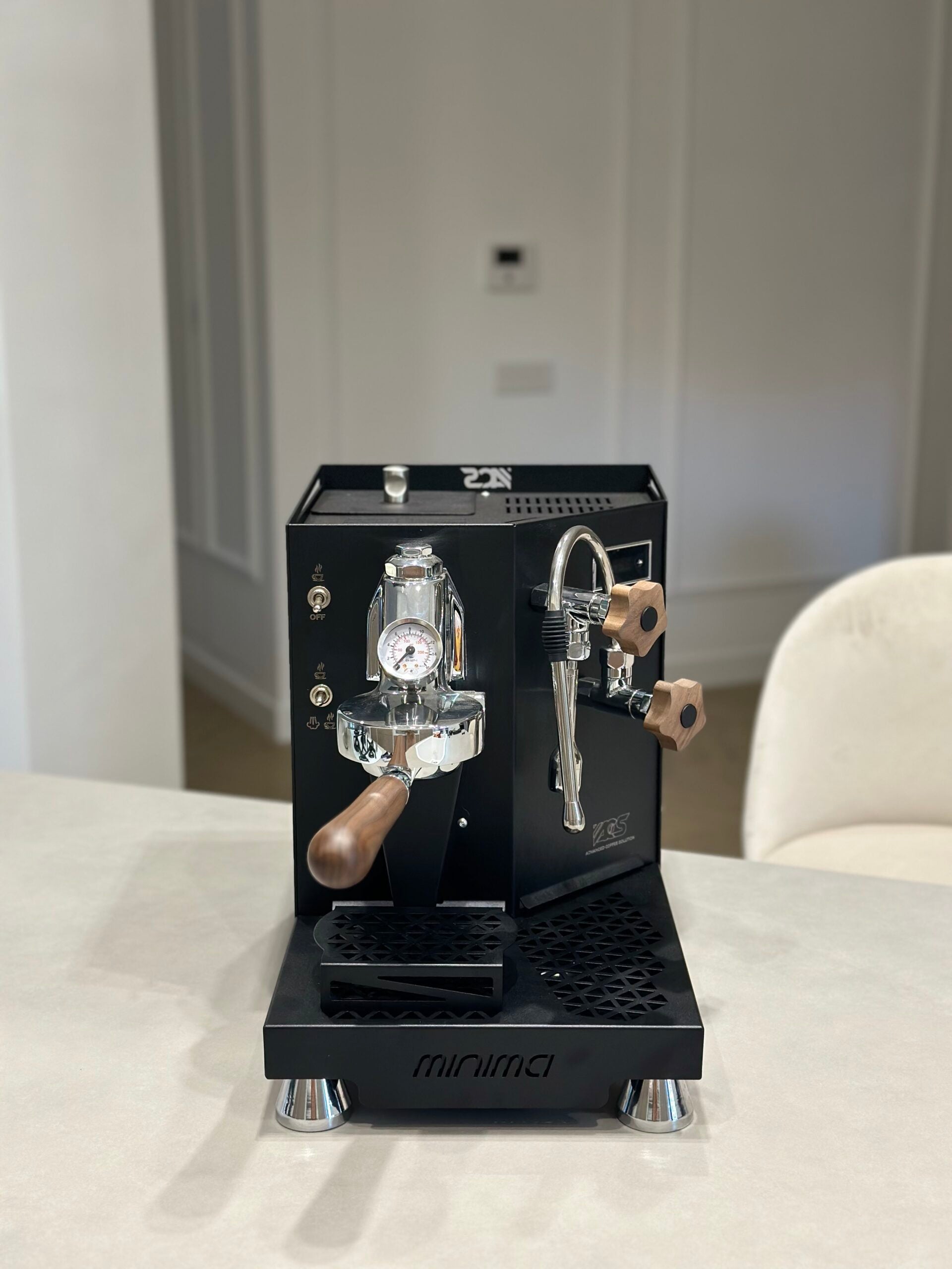 - PID-Temperaturregelung mit Anzeige und Manometer für Dampf- und Pumpendruck, automatische Kesselbefüllung, Shot Timer und LSP (last shot protection). Dank dieser Funktion brüht Minima auch bei niedrigem Wasserstand den letzten Kaffee fertig.